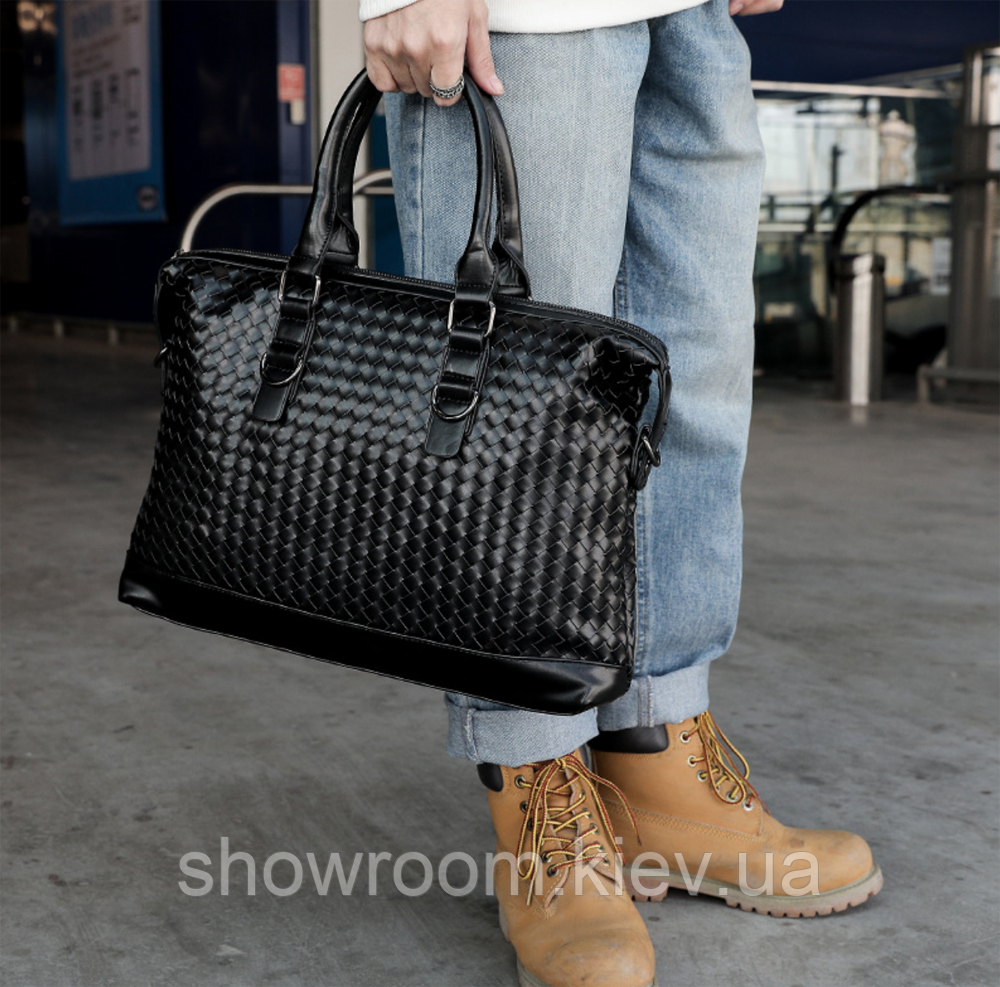 Чоловіча сумка із плетіння Prestige (4030) чорна